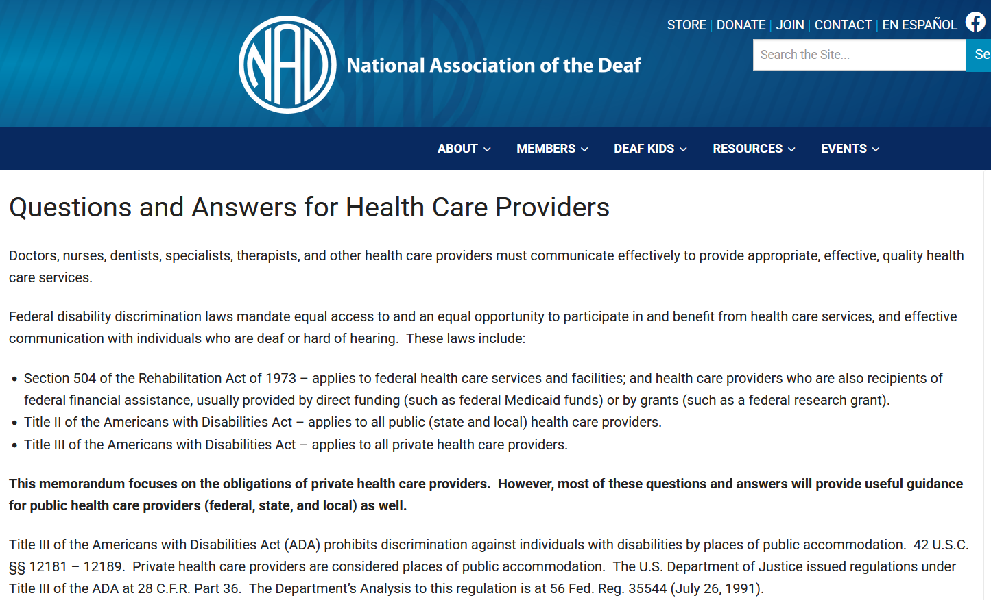 - This is a wonderful video that shares information regarding Deaf, DeafBlind, and hard of hearing patients, but also perspectives on how they have experienced health care historically. https://youtu.be/xr-mlkuTBa4?si=RCzzdxlx8JuFdKZb (See image below)